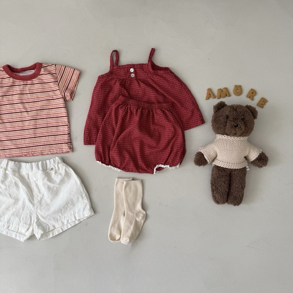퓨어한 느낌의 아이컬러와 통통튀는 레드 체크 컬러