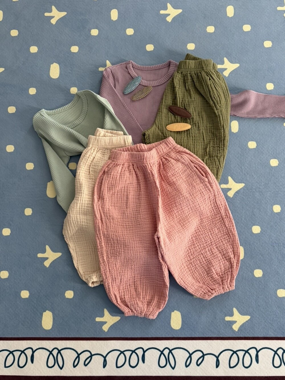 동글동글 넓고 귀여운 소시지 핏의 바지입니다