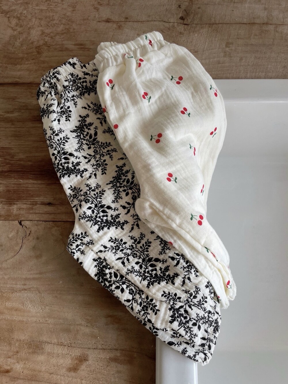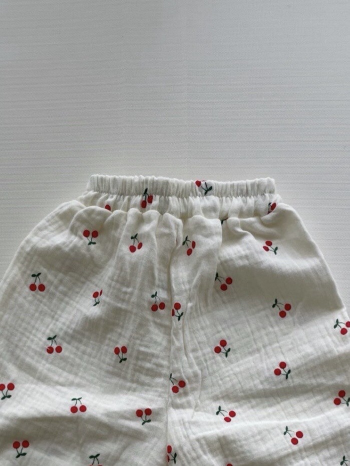 체리패턴에 레드 티셔츠 조합이 좋아서